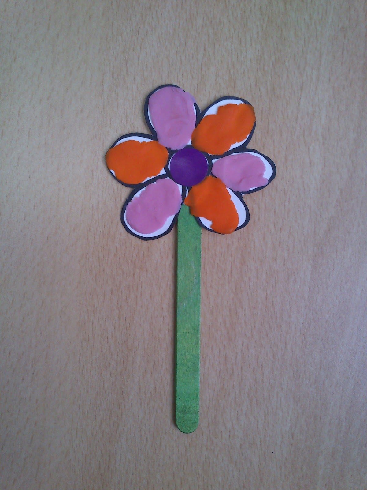 Un cop fet això, la retallem (també la podem vernissar perquè brilli més) i hi enganxem el pal de gelat… I llestos! Ja tenim una flor ben bonica!