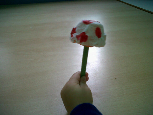 Depenent de l’edat del nen/a ho podrà fer tot o quasi tot. En el cas dels més petits, l’adult retallarà la ouera i ajudarà a que la plastilina quedi fixe perquè no es desmonti després el bolet.