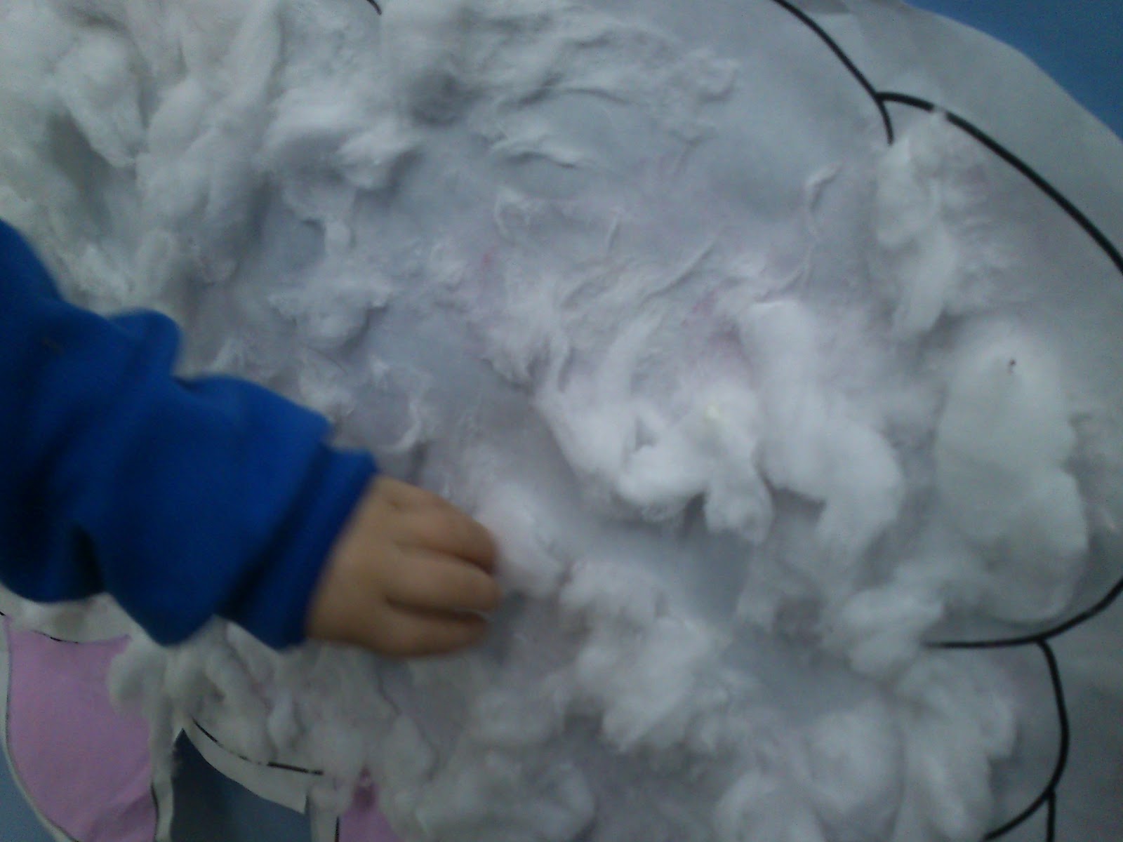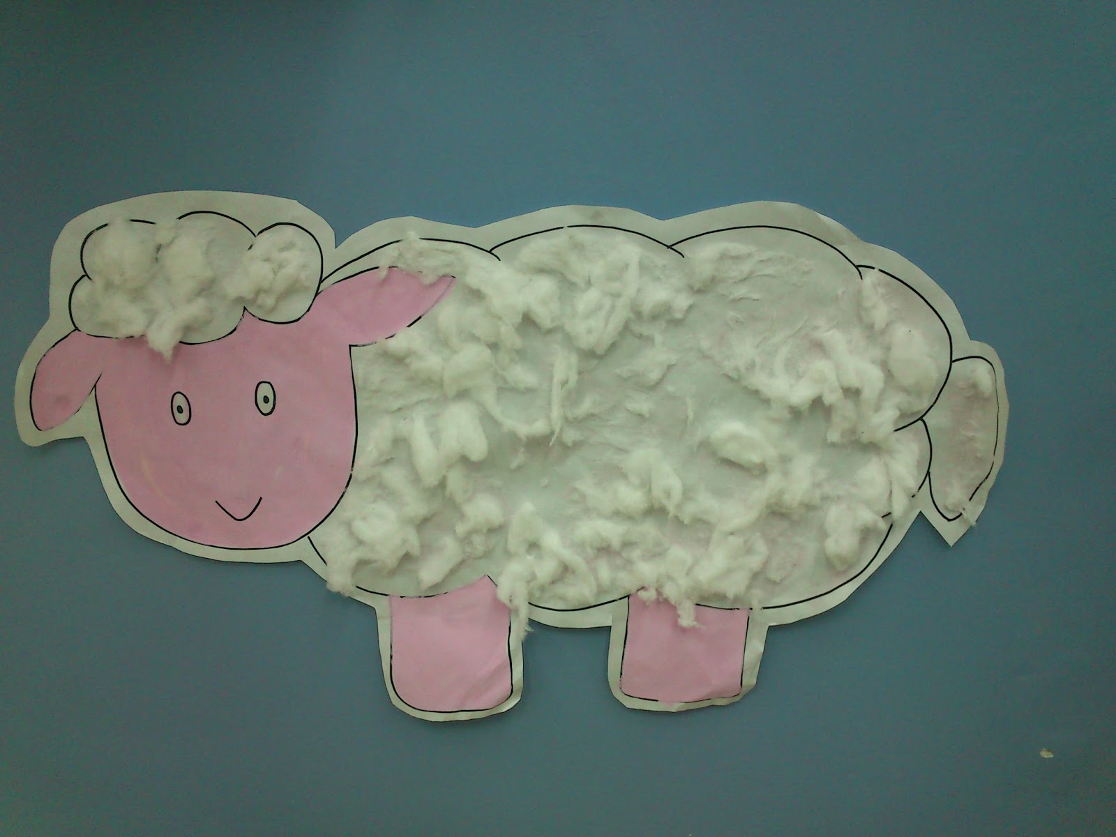 Dibuixem una ovella a un paper o cartulina gran. En pintem (si ho volem) la cara i les potes… I la resta… feina per a que facin els petits!