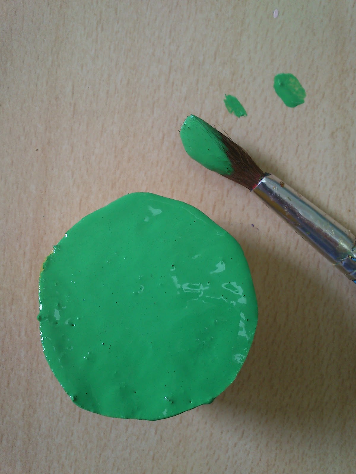 Partim per la meitat una poma i posem pintura de color verd a una de les cares: