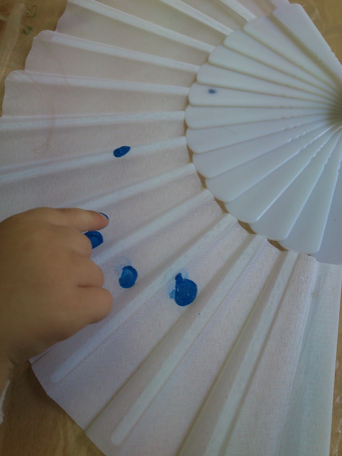 Molt fàcil! Agafem el vano i posem a sota el paper de diari o el trosset de plàstic. Els nens suquen els dits en pintura i van fent ditades damunt de vano: