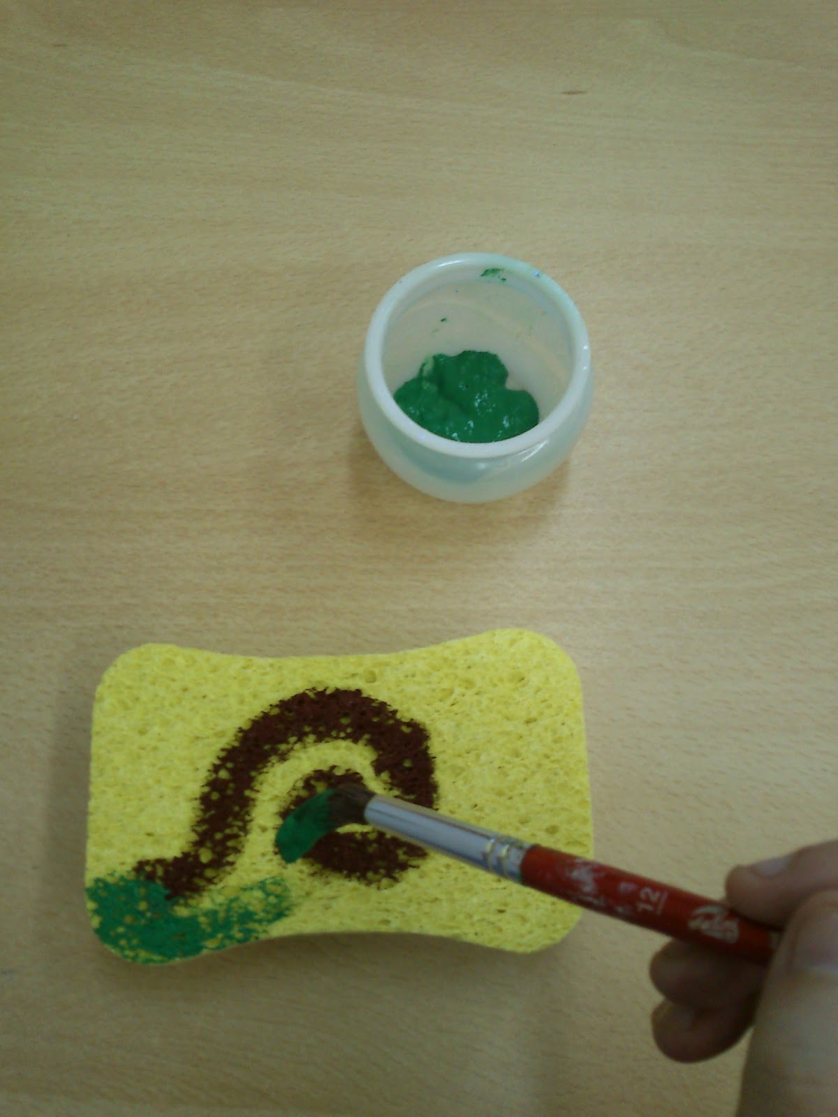 Dibuixem, amb el pinzell, un cargol senzill a l’esponja: