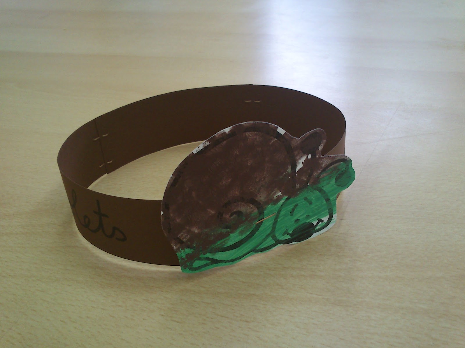 Un cop ho tenim acabat, ho retallem, ho enganxem a la corona (que primer haurem pres la mida del cap del nen/a aproximadament, perquè no els vagi gran o petita), i per últim, la grapem com es veu a la foto: