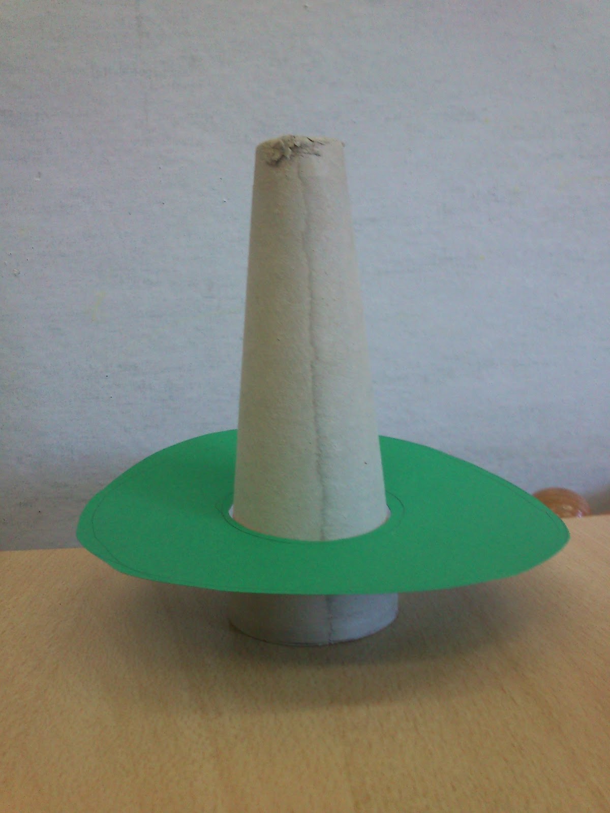 Quan acabem, deixem que s’assequi. Agafem la cartolina verda, i amb la base del con dibuixem la rodona, per fer-nos una idea de la mida… Amb les fotos s’entendrà millor!
