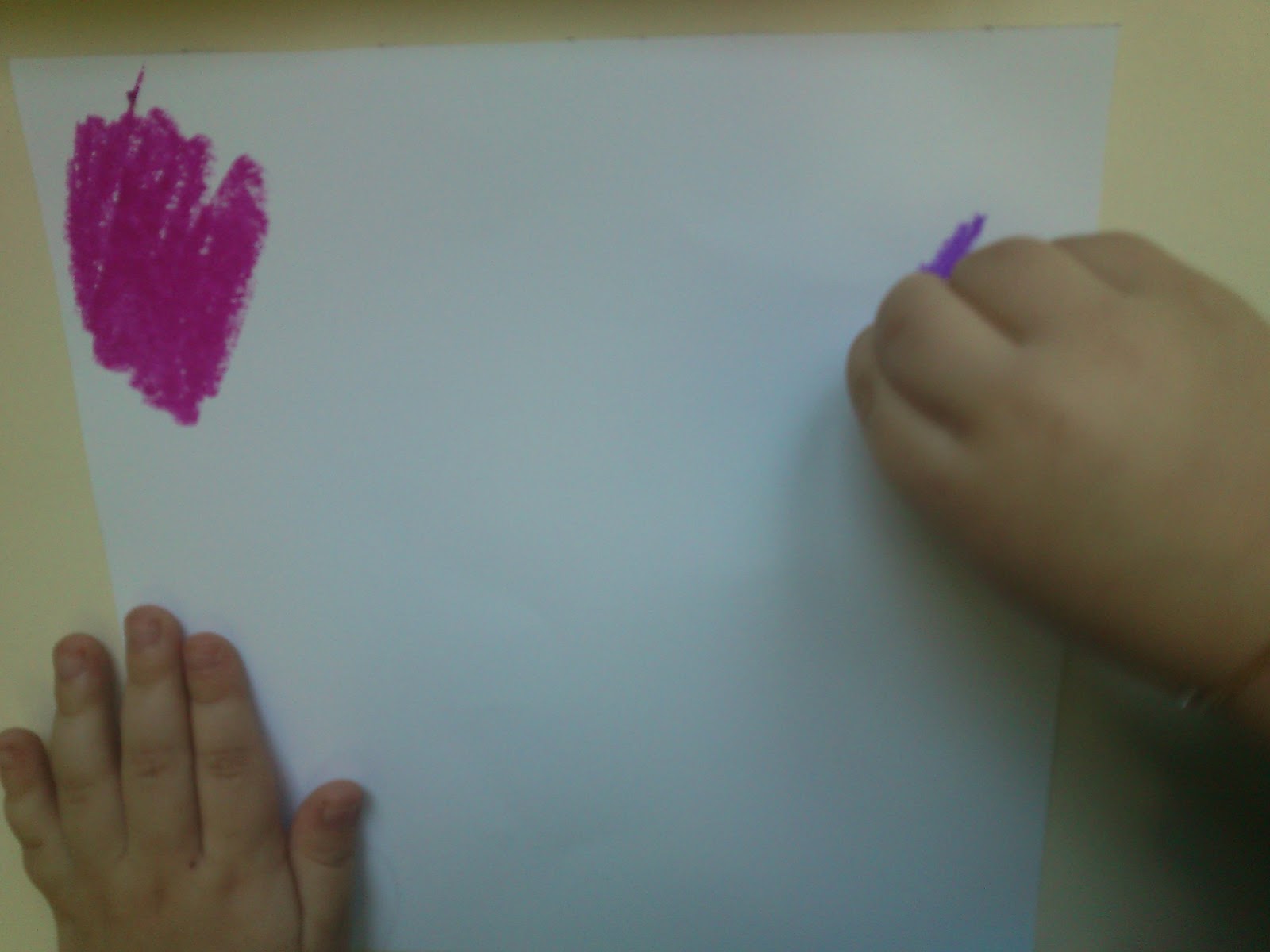 Agafem la cartolina blanca i hi pintem amb diferents colors, s’ha de pintar fort perquè quedi ben marcat cada color. Intentem no solapar uns amb els altres, de manera que aconseguim omplir tota la cartolina: