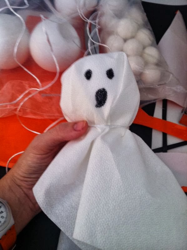 Tallem un tros de cordill i fem un nus just per sota la bola i li dibuixem la cara, així: