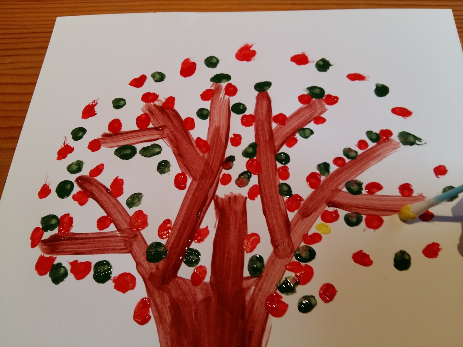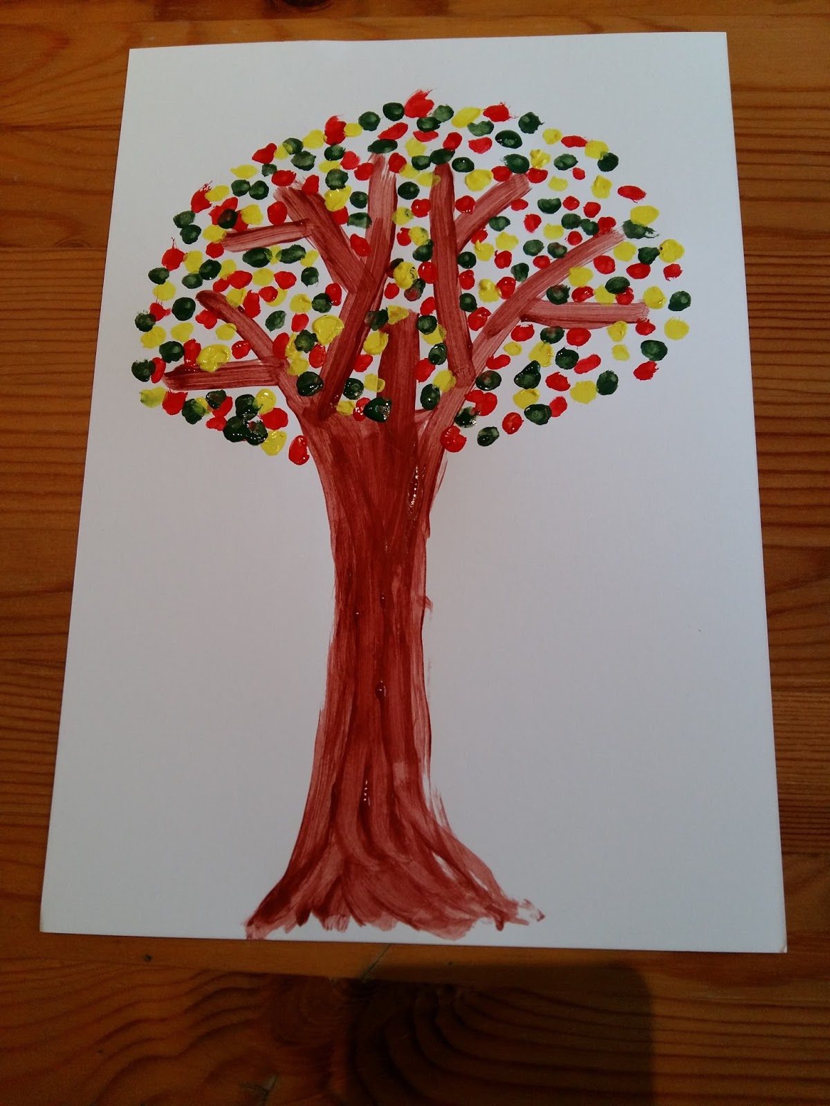 Un cop tenim tot el material a mà… podem començar per dibuixar amb el pinzell i la pintura marró, el tronc i les branques de l’arbre:
