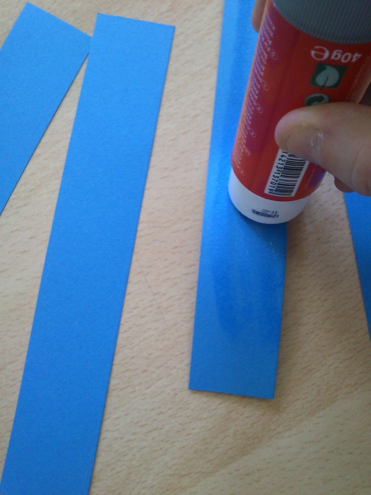 Agafem les cartolines i retallem 4 trossos en forma de rectangle allargat, com a la foto, per fer, més o menys, el símbol de la neu: