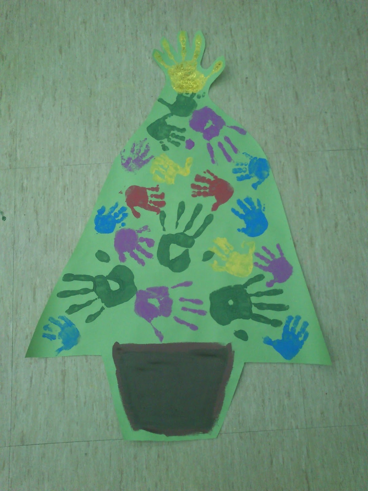 Aquí us deixo amb un arbre de Nadal fet estampant les mans. Tant les dels adults com les dels nens i nenes.