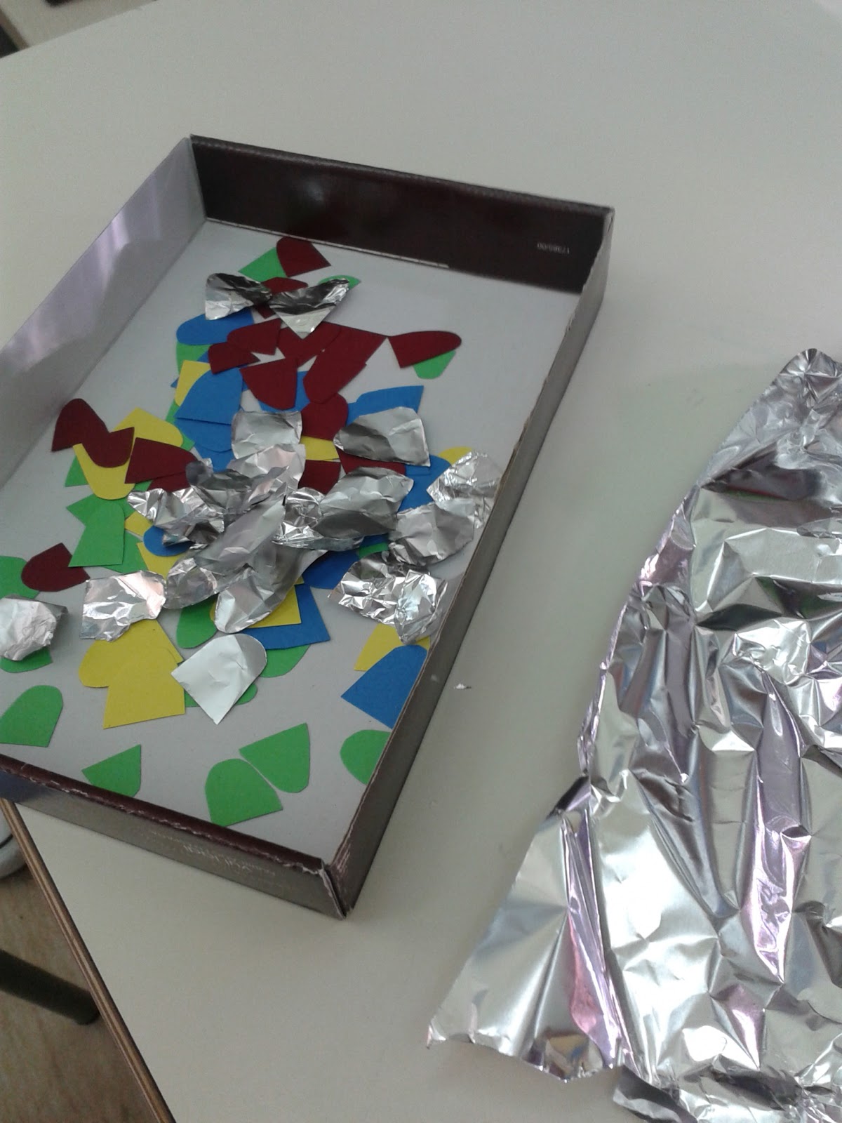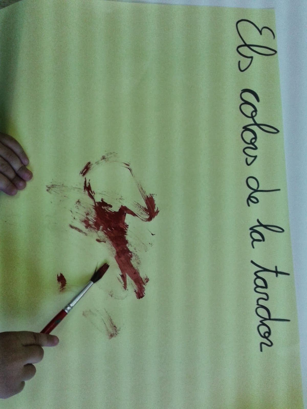 A les cartolines de colors hi dibuixem peces de roba típiques d’aquesta estació, l’hivern. Jo he fet una bufanda, uns guants, un jersei, una samarreta, uns pantalons, uns mitjons i un gorro. Un cop fet, ho plastifiquem.