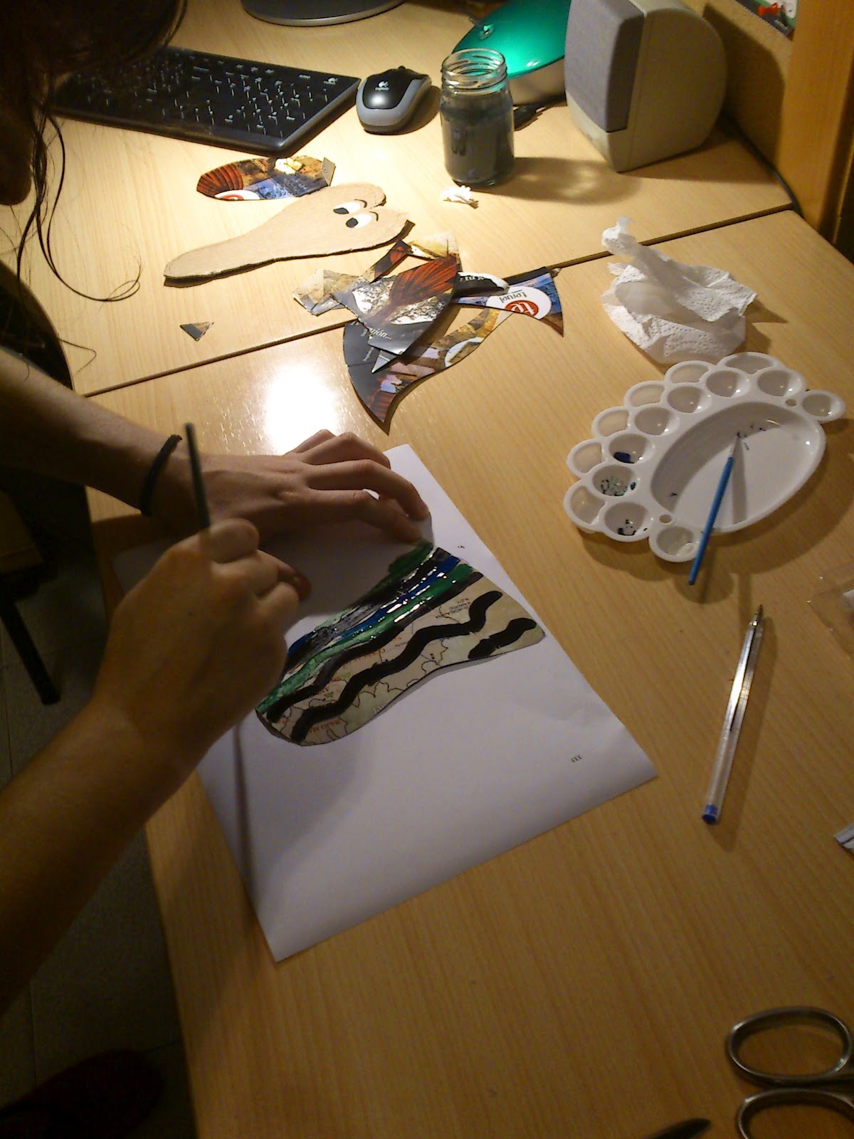Deixem una estona perquè s’assequi i ja estem a la recta final… Ho posem al damunt de l’altra part, posem alguna grapa pels costats perquè quedi ben fixat i… ja hi posem guardar les nostres tisores preferides!