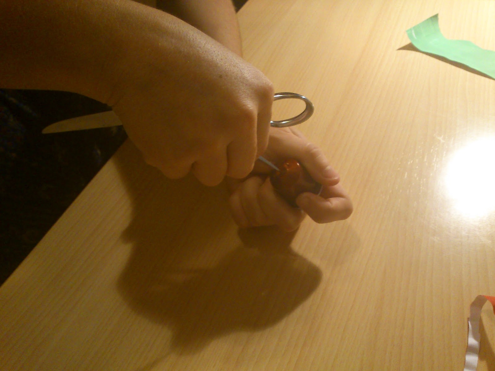 Agafem les pintues i pintem els ulls (que coincideixen amb les rodones del mànec de les tisores):